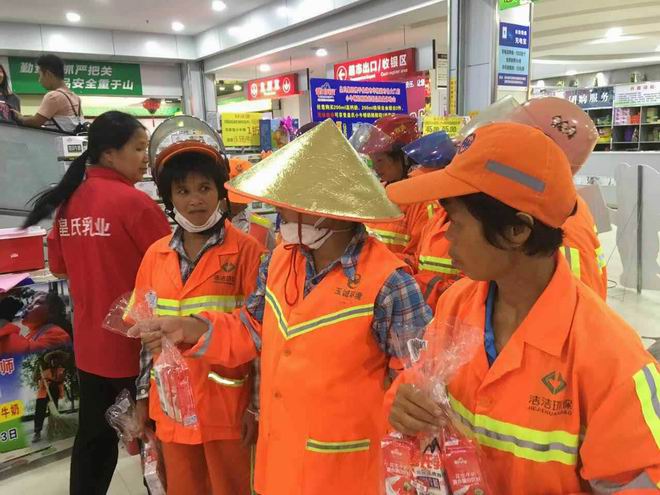給予貴港全城環(huán)衛(wèi)工人免費領(lǐng)取皇氏牛奶