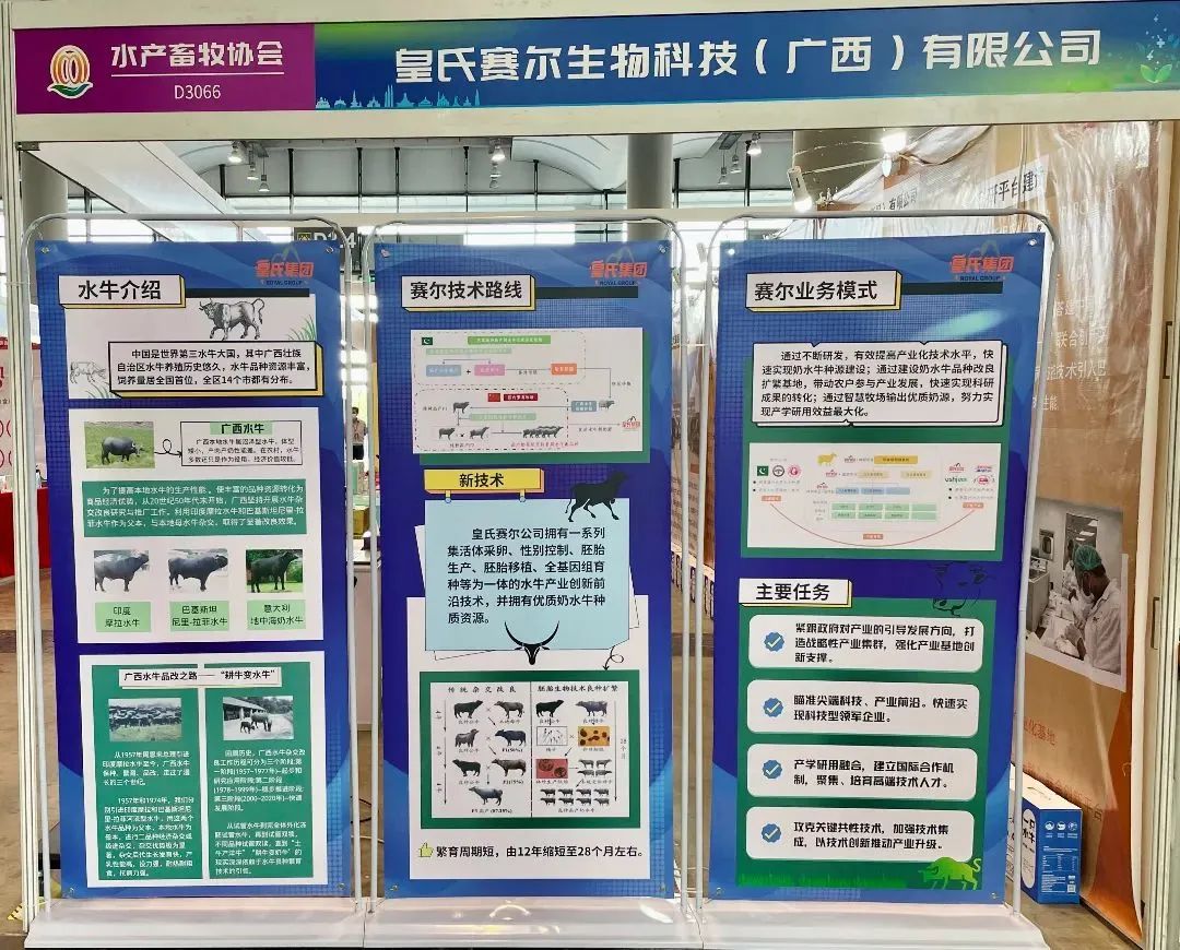 共享種業(yè)成果,共創(chuàng)種業(yè)輝煌。11月12-13日,第三屆中國(廣西)—東盟現代種業(yè)發(fā)展大會在廣西南寧國際會展中心D1、D2、D3館舉辦。來自區(qū)內外及東盟國家(廣西代理公司)共358家單位參展。主要展示推介廣西和我國有關?。ㄗ灾螀^(qū)、直轄市)以及東盟國家的優(yōu)稀新品種資源及相關產品。為促進中國奶水牛種源高質量融合發(fā)展,加快推進奶水牛產業(yè)提質增效及轉型升級,第三屆中國(廣西)—東盟現代種業(yè)發(fā)展大會期間,圍繞“種業(yè)科技創(chuàng)新與合作發(fā)展”的主題,皇氏賽爾生物科技(廣西)有限公司作為全國領先的水牛種業(yè)科技企業(yè)受邀參會。展會上,皇氏賽爾公司主要展示了在水牛種源生物技術方面的核心實力,以及在中國和巴基斯坦的項目進展情況和科研成果。賽爾公司擁有一系列集活體采卵、性別控制、胚胎生產、胚胎移植、全基因組育種等為一體的水牛產業(yè)創(chuàng)新前沿技術,并擁有優(yōu)質奶水牛種源資源,通過不斷研發(fā)有效提高產業(yè)化技術水平,快速實現奶水牛種源建設;通過建設水牛品種改良擴繁基地,帶動農戶參與產業(yè)發(fā)展,快速實現科研成果的轉化;通過智慧牧場輸出優(yōu)質奶源,努力實現產學研用效益最大化。