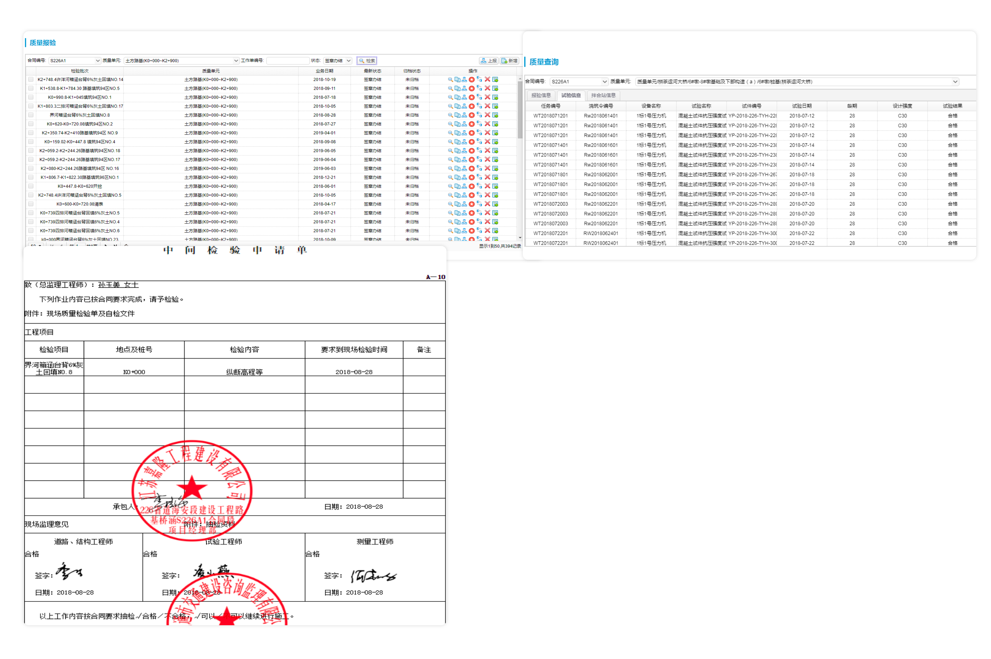 質(zhì)量管理業(yè)務(wù)全鏈打通,質(zhì)量報驗(yàn)關(guān)聯(lián)拌合生產(chǎn)、試驗(yàn)檢測、張拉壓漿等全面數(shù)字化。